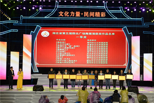 2020年9月28日经过全省34个节目激烈角逐,层层筛选、评委严格打分,最后被荣幸邀请到恩施州宣恩县人民广场现场集中展演,最终荣获“文化力量·民间精彩”全省第五届群众广场舞展演活动一等奖。